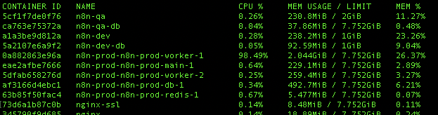 10|n8n | [2298301:0x23bd3000] 7136206 ms: Mark-Compact (reduce) 3738.2 (3830.1) → 3738.2 (3829.3) MB, pooled: 0 MB, 3121.56 / 0.00 ms (average mu = 0.152, current mu = 0.000) last resort; GC in old space requested