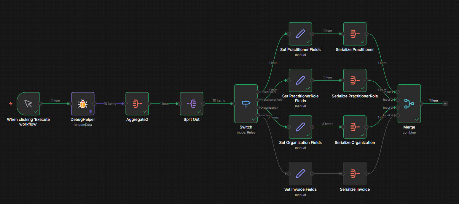 In the example above, the first aggregation (after set fields) is intended to serialize the inputs from the set field node; the output is parsed as data field. The second aggregate combine all individual fields from the data field. The third aggregate is intended to again serialize the second aggregate node’s result.