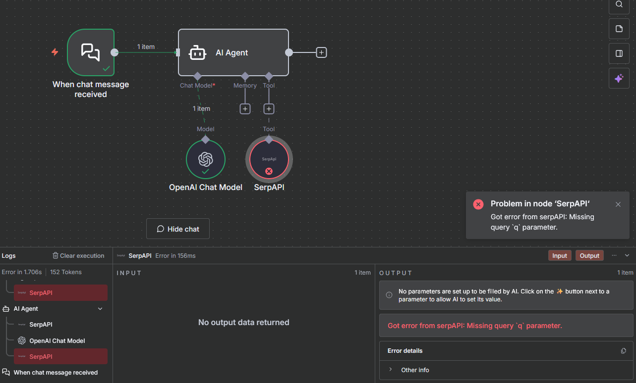 Agent is failing to be able to properly query the SerpAPI tool. Appears that agents generally are unable to provide the proper query parameter to the tool. Occurs with just a basic agent with only SerpAPI, no specialized prompting.