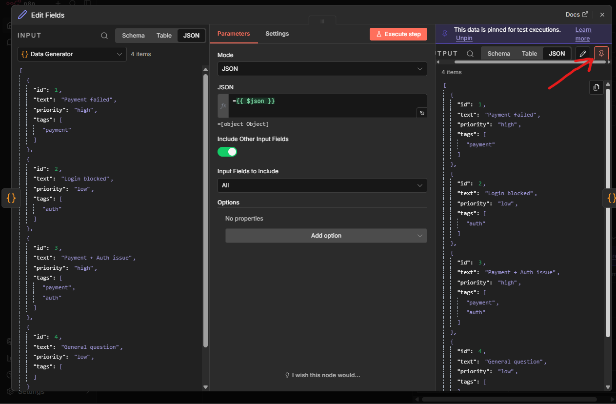 Method 2 β Visual Logging with a Set Node (UI Debug)
