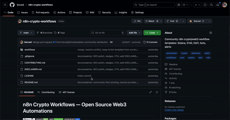 Not saying these are perfect — they’re more like building blocks. I’d love to see how other people are wiring n8n into crypto, so if you’ve got flows you’ve been using, definitely drop them in or fork/PR. At the very least, it saves me (and maybe you) from reinventing the wheel each time ![]()