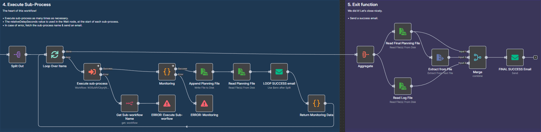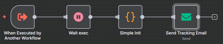 … and calls this workflow (let’s call it “Subworkflow”) that waits the pre-defined number of seconds in “Start” node and sends back an email: