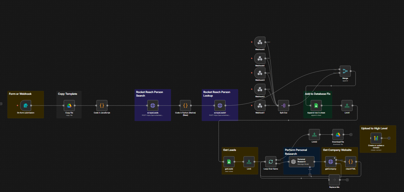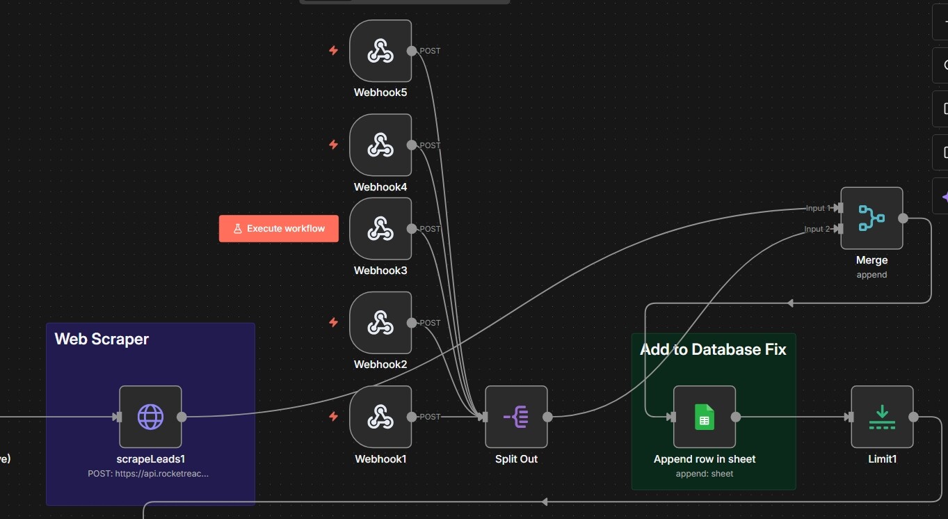 I’m trying to pull email addresses and company contact data from rocket reaches application using their API key access to then input it into a google sheets when the workflow is executed. The reason I was using five webhooks is because Rocket Reach limits me to only 100 data points per search, when I want 500 total data points per search. Do you think I am better to simply create a loop and have the loop run 5 times or do you have another suggestion? Thank you for your efforts and suggestions @Parintele_Damaskin