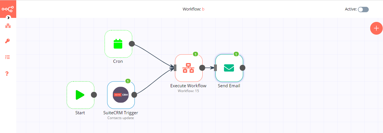 In order to use SuiteCRM trigger from n8n you need to first install our Webhooks module (packages · master · sdoc / n8n-plugins / n8n plugin for suitecrm · GitLab).