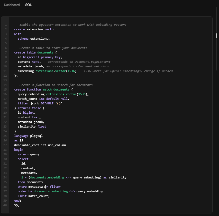 Using Supabase pgvector