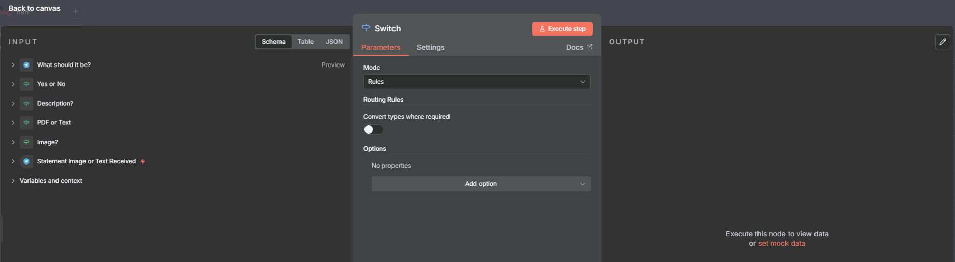 When I use a ‘switch’ it doesn’t appear to make any difference what rules or how many I create there are no 'output’ connections from the node.