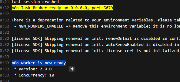 n8n-main-1 | Last session crashed