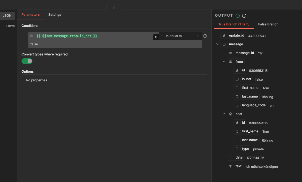 - Tool: “Bei Unklarheit bei Team Lead nachfragen” (Telegram sendMessage to team lead)