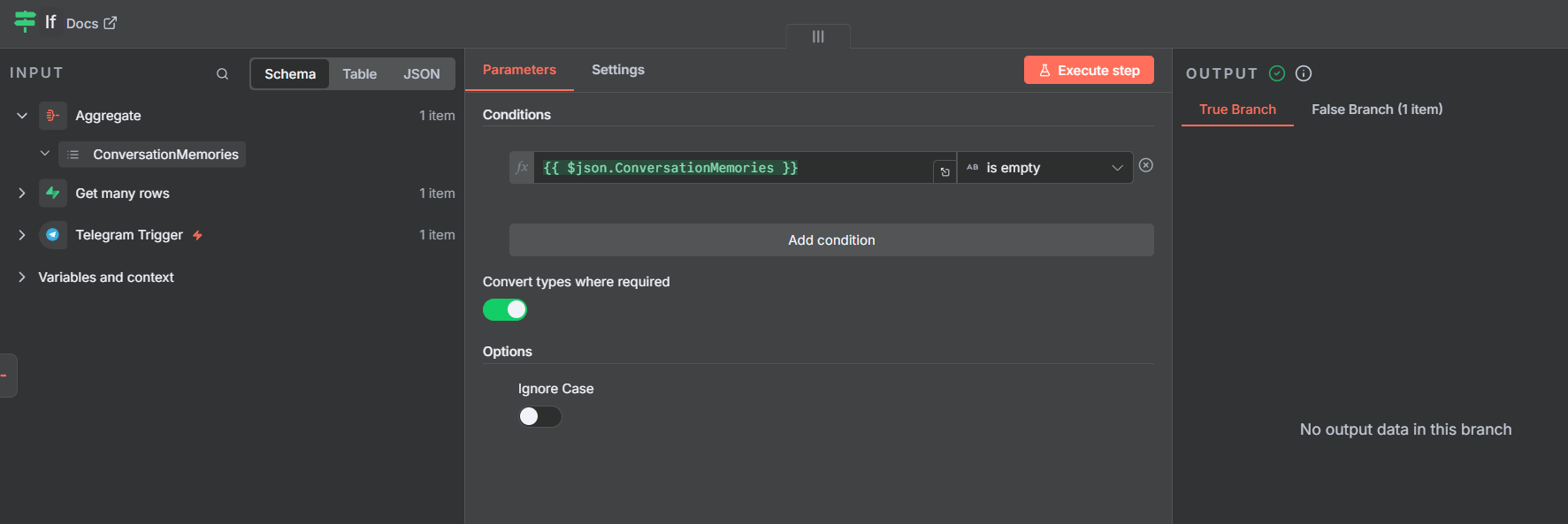 so i tried to get an if block so that even if the A’s memory was not in conversation memories it still goes to agent but new problem was for if block when i set the condition to" is empty " it considerd [empty array] as false
