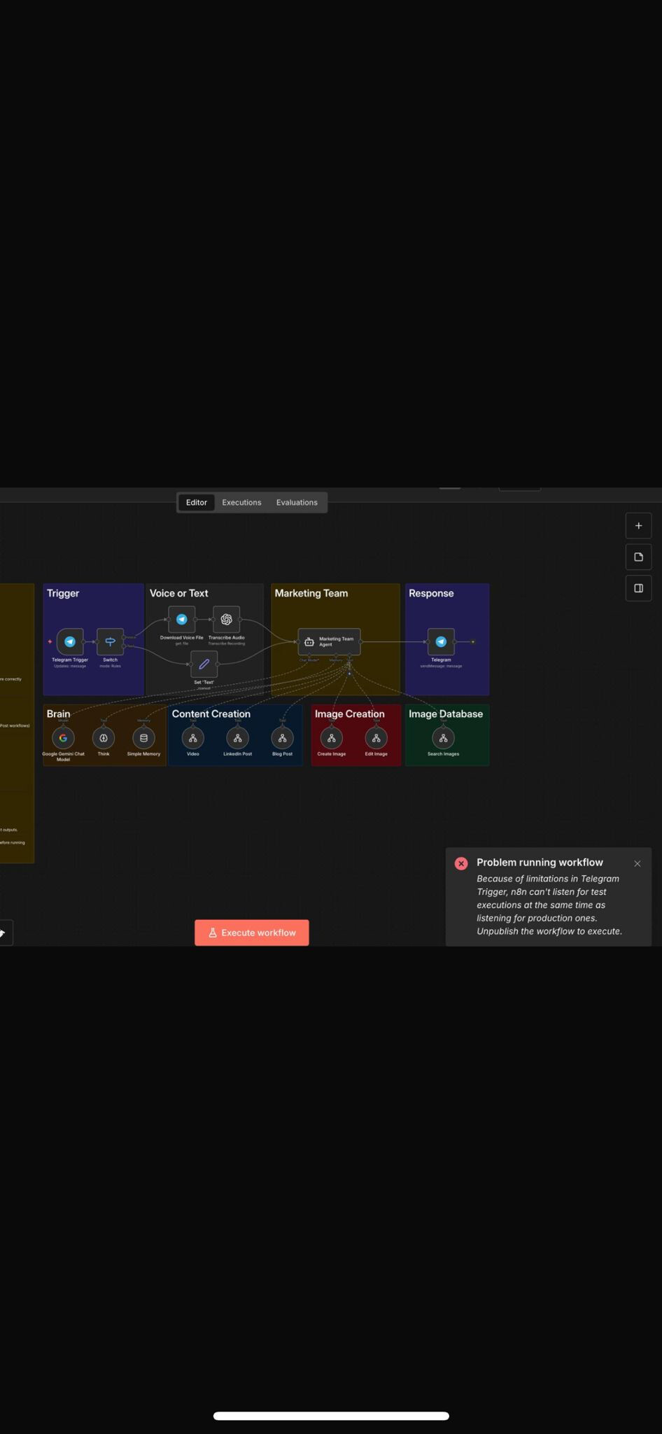 n8n is wanting me to unpublish the workflow because for some reason that lowers the number of test excecutions the workflow has to listen to. But when i unpublish the workflow my telegram simply does not respond to the trigger. what do i do?