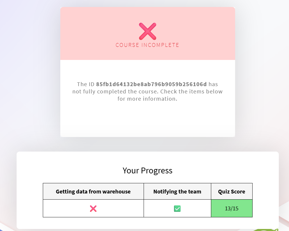 FYI, the reason i had 2 sign-ups is because the unique ID for my 1st sign-up did not work in the http request node so i had to create another one with another email. Once i did, the workflow went thru and everything worked fine. I dont know why it didnt like my 1st email which i believe you changed it to, but i thought that might want to know since you’re trying to fix up the course. Also, before i completed the course with a passing score, i did get email notifications from you guys up on retrys until the completion. Hope it gives you some clue on troubleshooting. Thanks again.