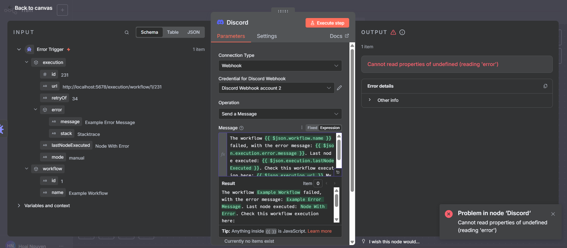 I have checked again, and the only issue is that the workflow named “Error workflow” is not working. The error message is: “Cannot read properties of undefined (reading ‘error’)”