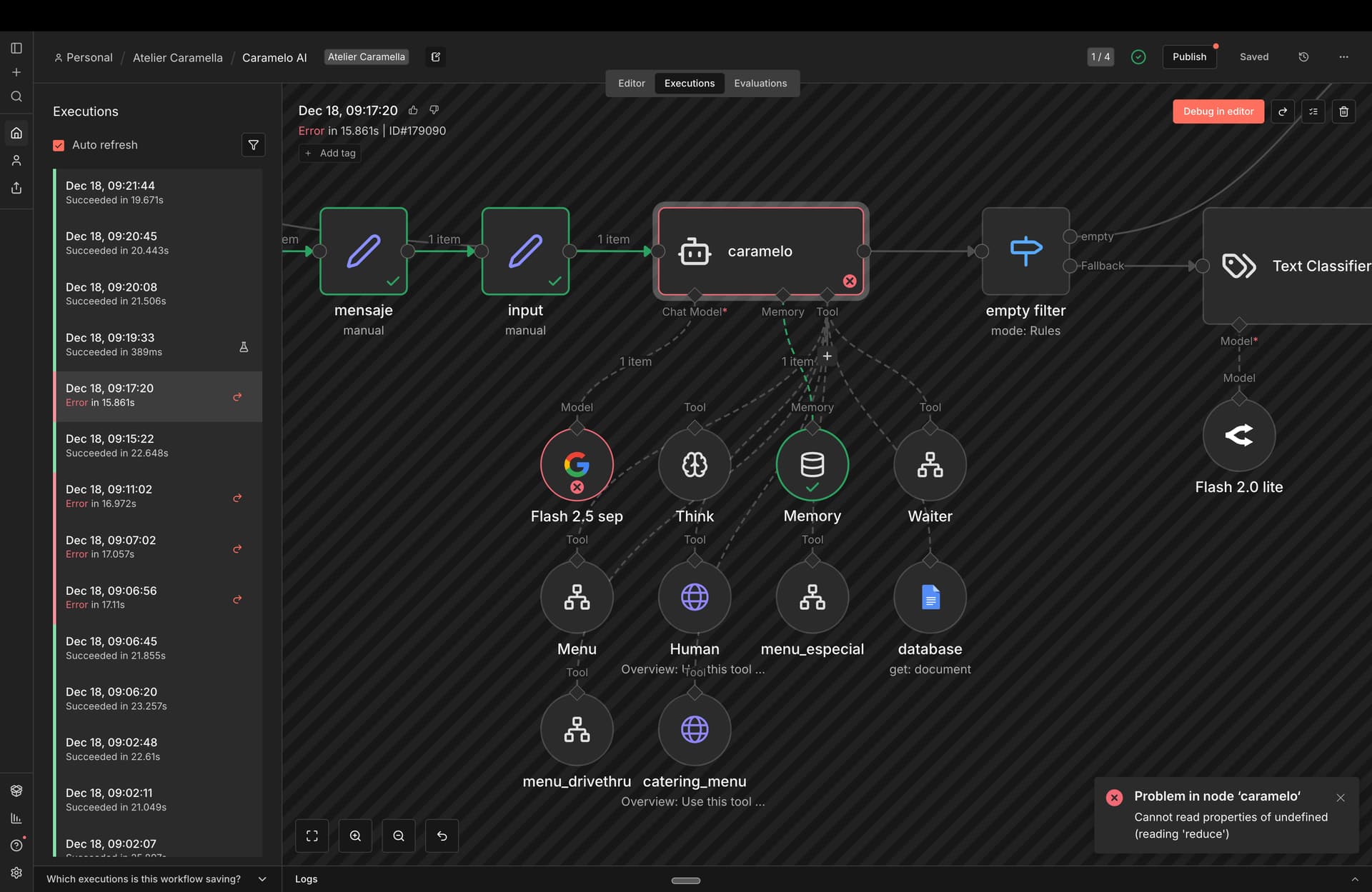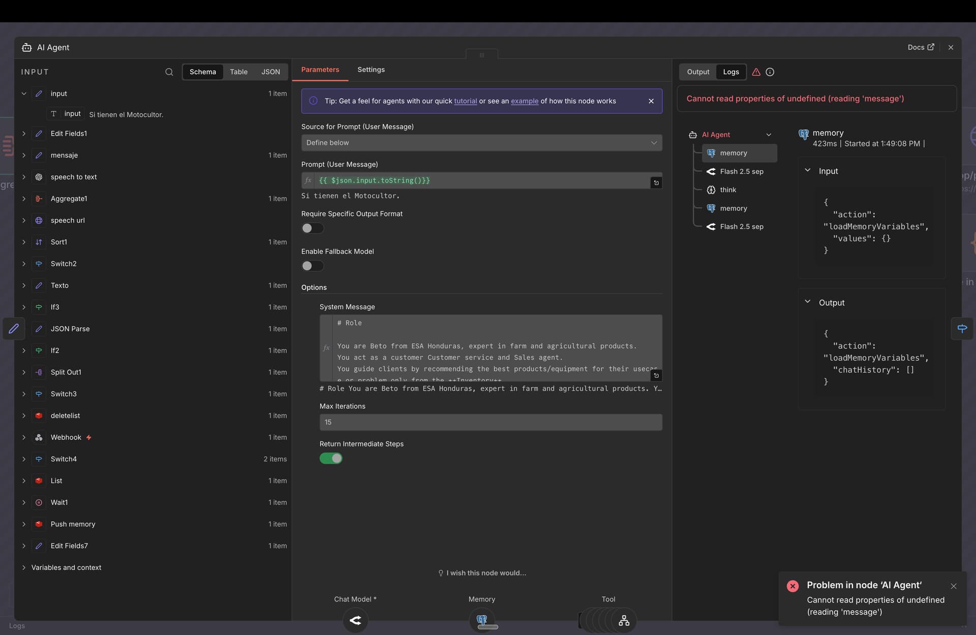 Hey parintele morning my ai agent were completely fine for months running smoothly and form one day to another sometime work sometimes don’t it doesnt make sense i change the provider directly from google form claude from open route and open ai and still sometime work sometimes it doesn’t now is saying me : “Cannot read properties of undefined (reading ‘reduce’)”