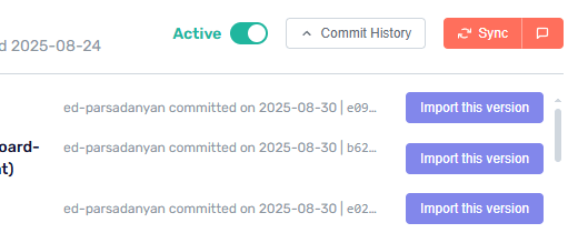 Sync individual workflows instantly with one click, or add custom commit messages for better tracking.