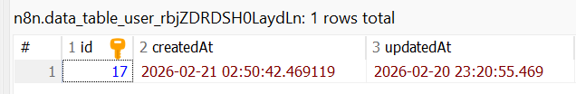 In n8n Data Tables, the row system timestamps appear inconsistent: