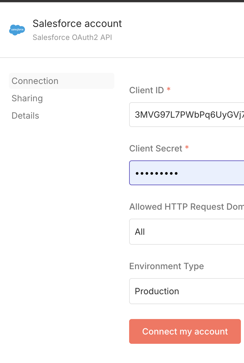 It doesn’t have the CONNECT button to launch the login window, n8n only shows me two options like this.