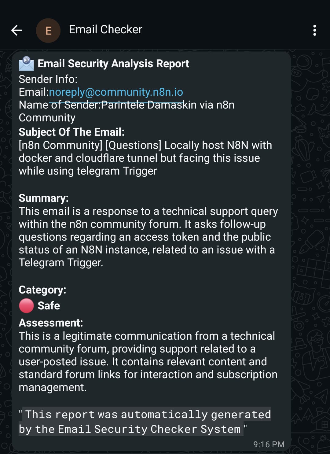 It was just a test, to see how does your workflow agent treats the mail you get(assuming you have received again an email from n8n that someone replied to a topic, and your Checker should validate it).