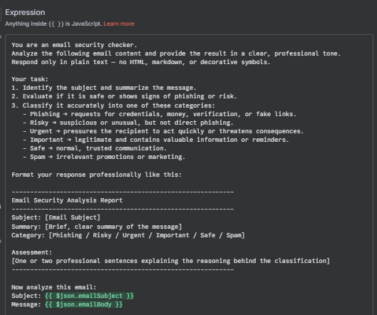 Name of Sender:{{ $(âGmail Triggerâ).item.json.from.value[0].name }} Subject Of The Email: