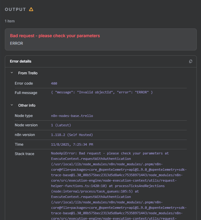 I’m trying to add labels to a Trello card using the Trello node in n8n (self-hosted v1.118.2). The workflow receives type and category from a webhook, and I want to map these to Trello label IDs dynamically.