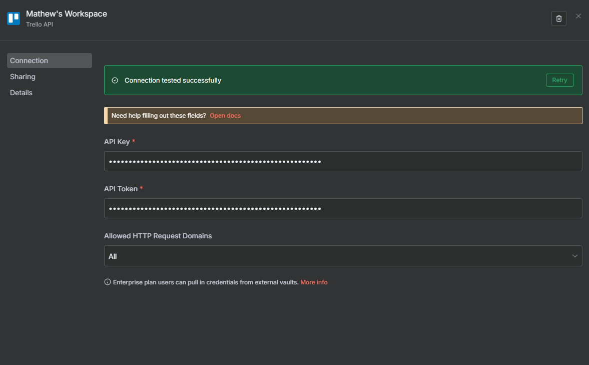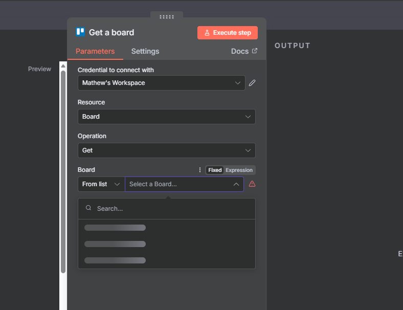 I have webhook trigger and I will pass the data and create a trello card to specific board and list, Trying to get the boards but it’s not loading or showing.