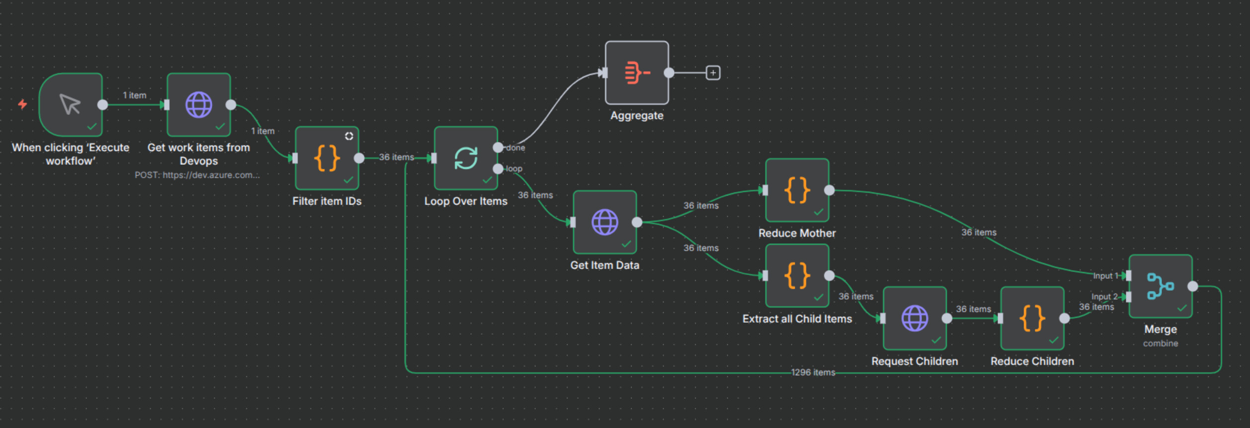 I am trying to make a list of work items from Azure Devops and list their children. Problem here is that the main query (the work items) have a sub-list with relations where some of them are the children I want to show but the children have no relation to their parent, I really need to merge them on a one-by-one basis.