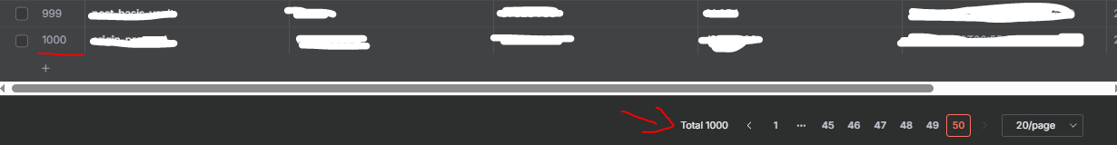 Table with thousand unique rows