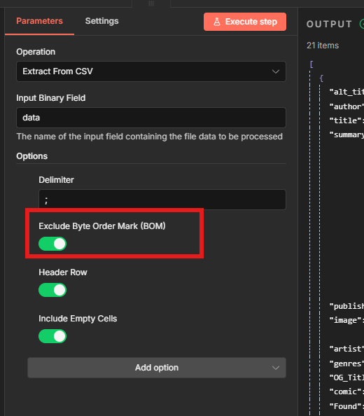 The csv was created in n8n so I tried resaving using Google Docs which did fixed the Set node problem. Since saving csv file in n8n adds weird encoding is there other methods to save a csv file with correct encoding?
