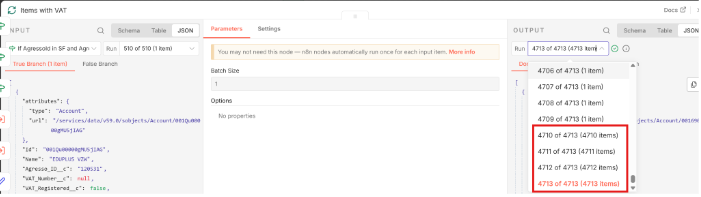 During workflow execution, the node seems to correctly process items in batches through the loop branch.