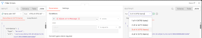 (Below is an example of how nodes after the loop receive and handle the split/duplicated items):