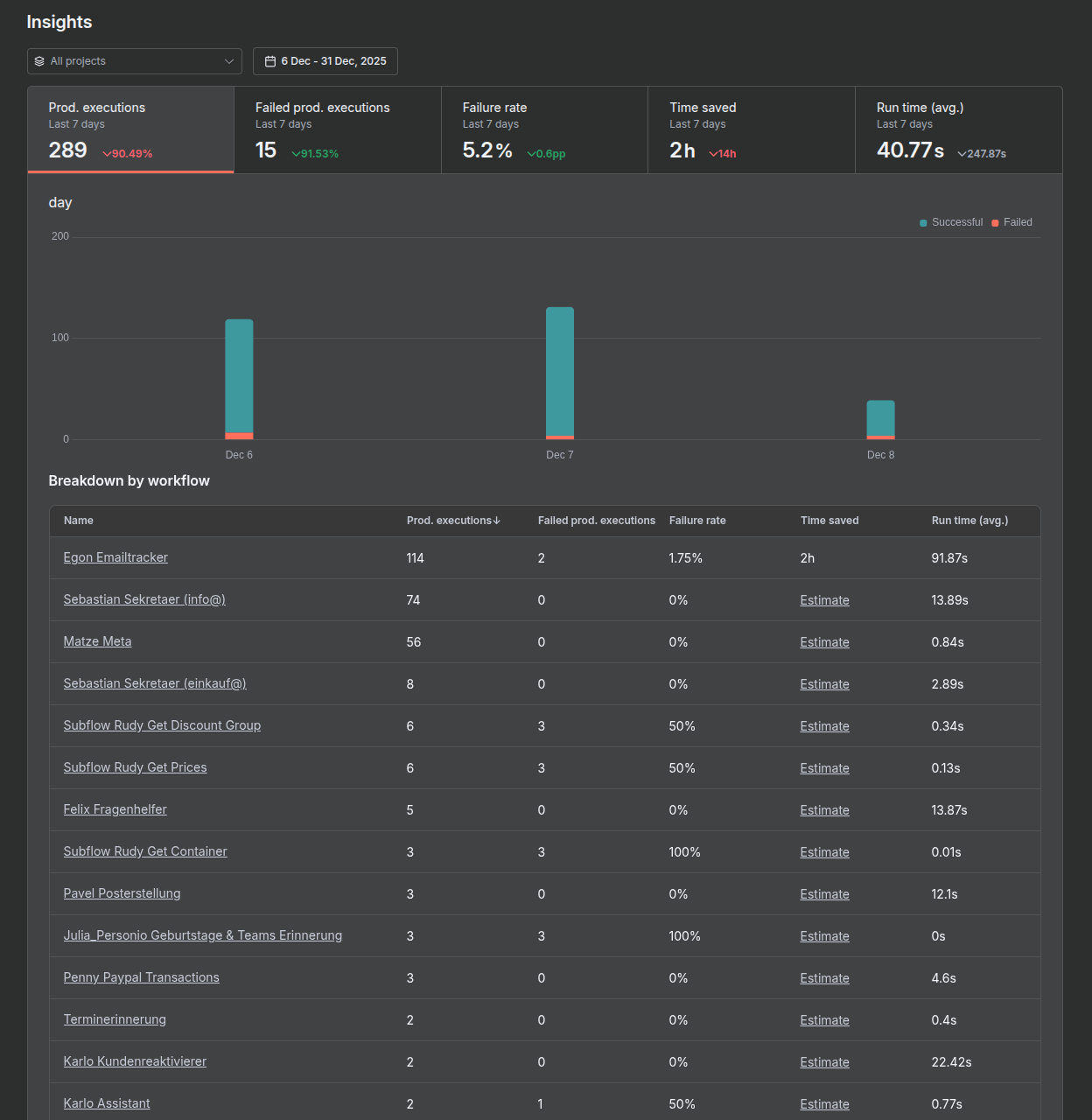Am I wrong or is it possible that the counts reported by the weekly n8n report are not valid? These seem at least buggy. Every report we receive refers to the same date “8 Dec 2025 | n8n | you’ve used 50.5% of your annual executions quota”. Unfortunately, the report does not give any insights such that we could compare our findings.