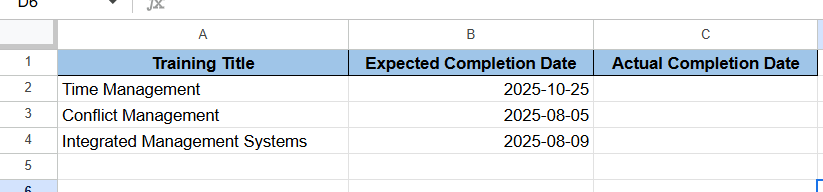 If my google sheets have matched with the course title that user provided, it will automatically update the actual completion date. But now it cannot update it….