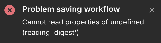 Either the workflow gets saved but I can’t access it (the simplest manual trigger node is all the workflow), or I can’t save a complex workflow at all.