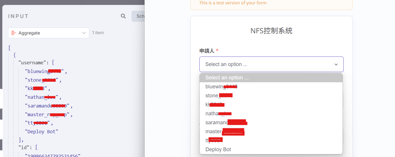 {{ JSON.stringify($('Aggregate').item.json.username.map(name => ({