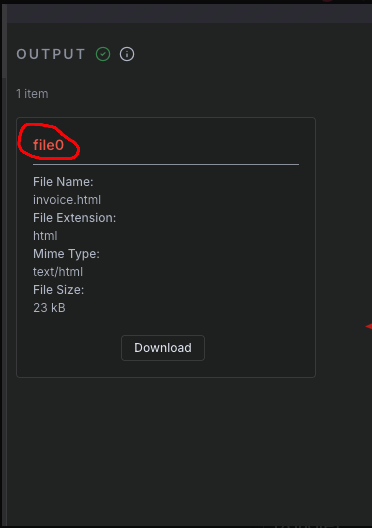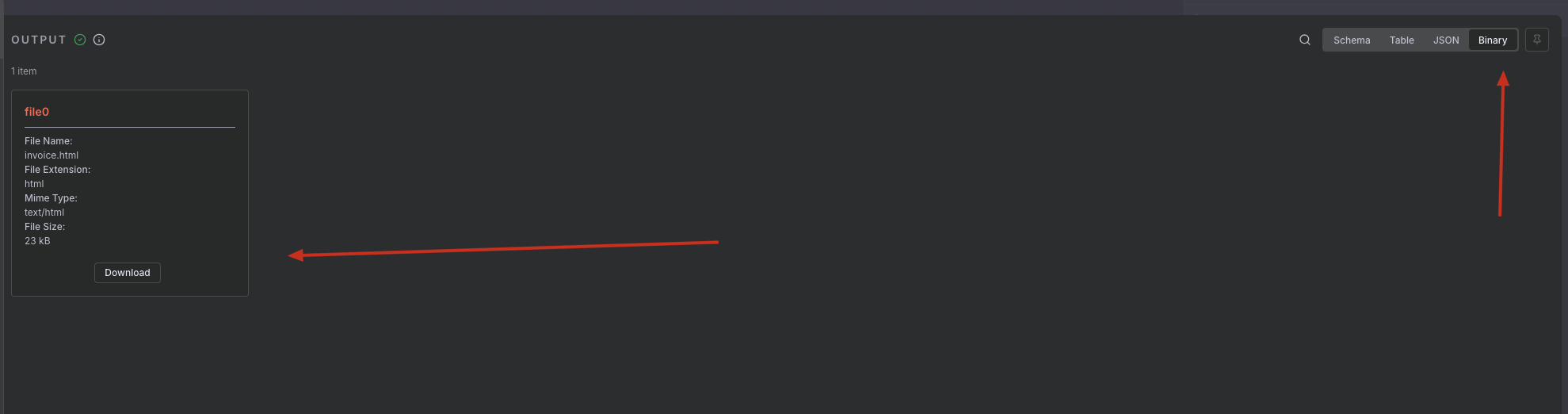 i can get the file with a download button in the UI but i can’t get the real binary data to use it in another node, exaple send the document via telegram