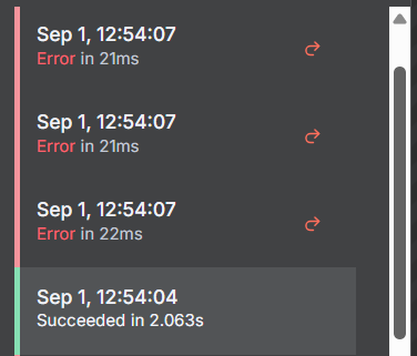 However, when I check executions, I see some errors after successful execution.