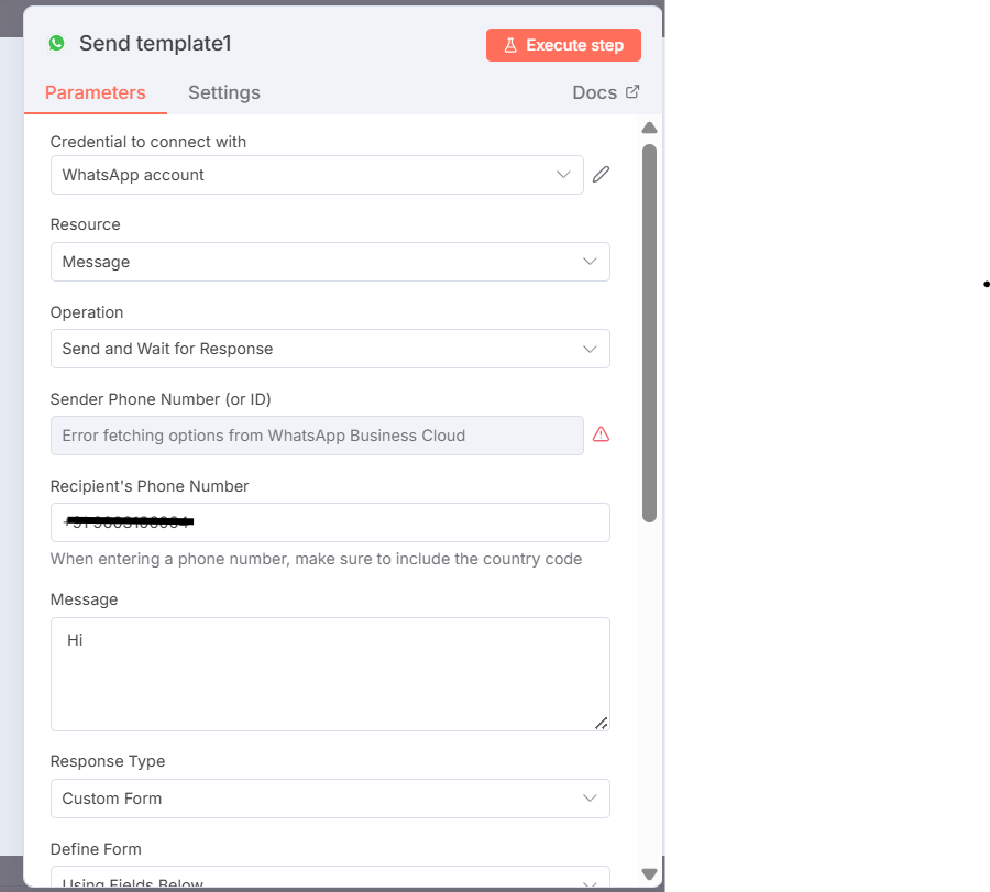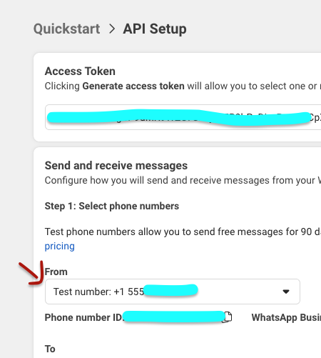 > this might be the issue. When I was testing the connection on my end I also initially left this field as is and it caused error. When you click it, from a drop down list pick the testing number meta provides in API Setup.