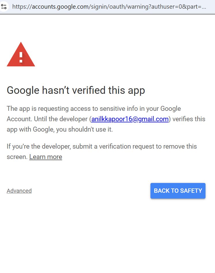 For that, u need to do the following: Go to the google cloud console, search for “API and services”, there you will see “OAuth consent screen” in the side bar and from there you can go to “Audience” and you can first add a test user (which will work already but you will need to log in again every ~7 days if not pushed to prod) and then afterwards you can push to production.