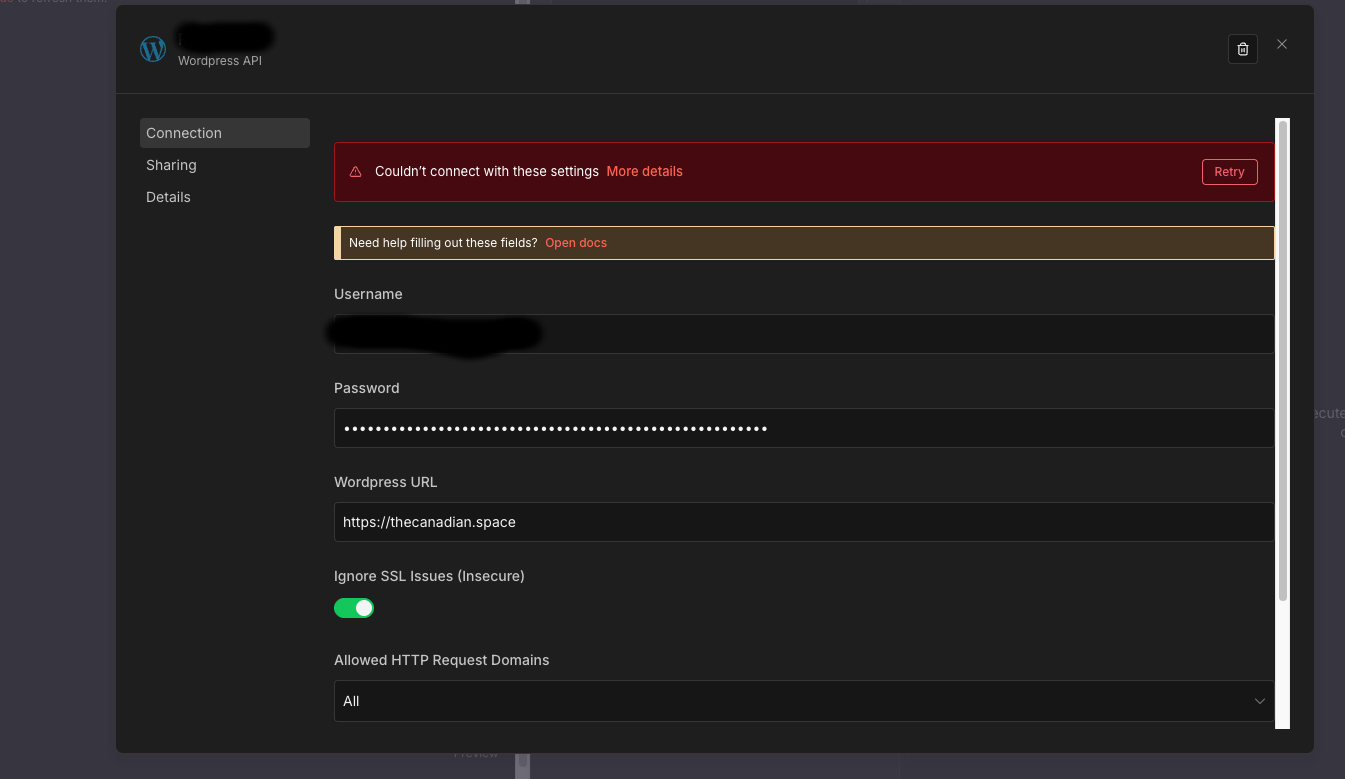 This guy had been functioning fine for over a month, and then yesterday it started erroring out. I deleted and remade the credential. Reset the users application password. Restarted by n8n docket. And even added a couple of security things to courdflare just incase that was the issue - and no luck.
