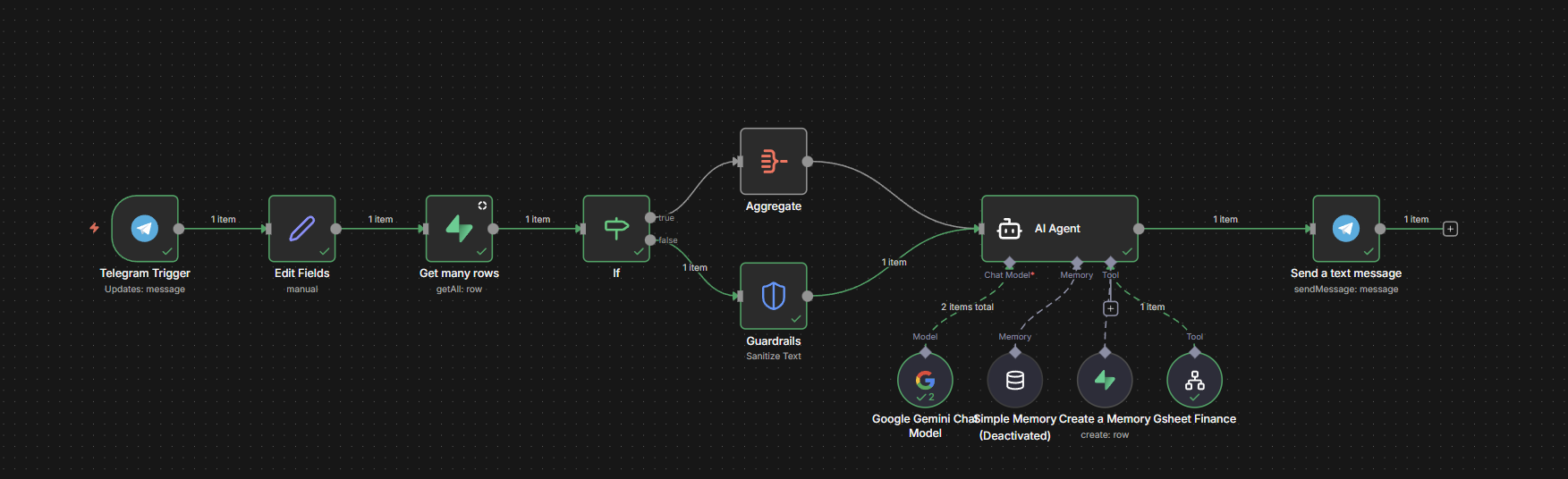 A conversational expense tracker that can understand something like “I just had dinner for 25k, add it to my expenses” is a perfect mix of AI + n8n: