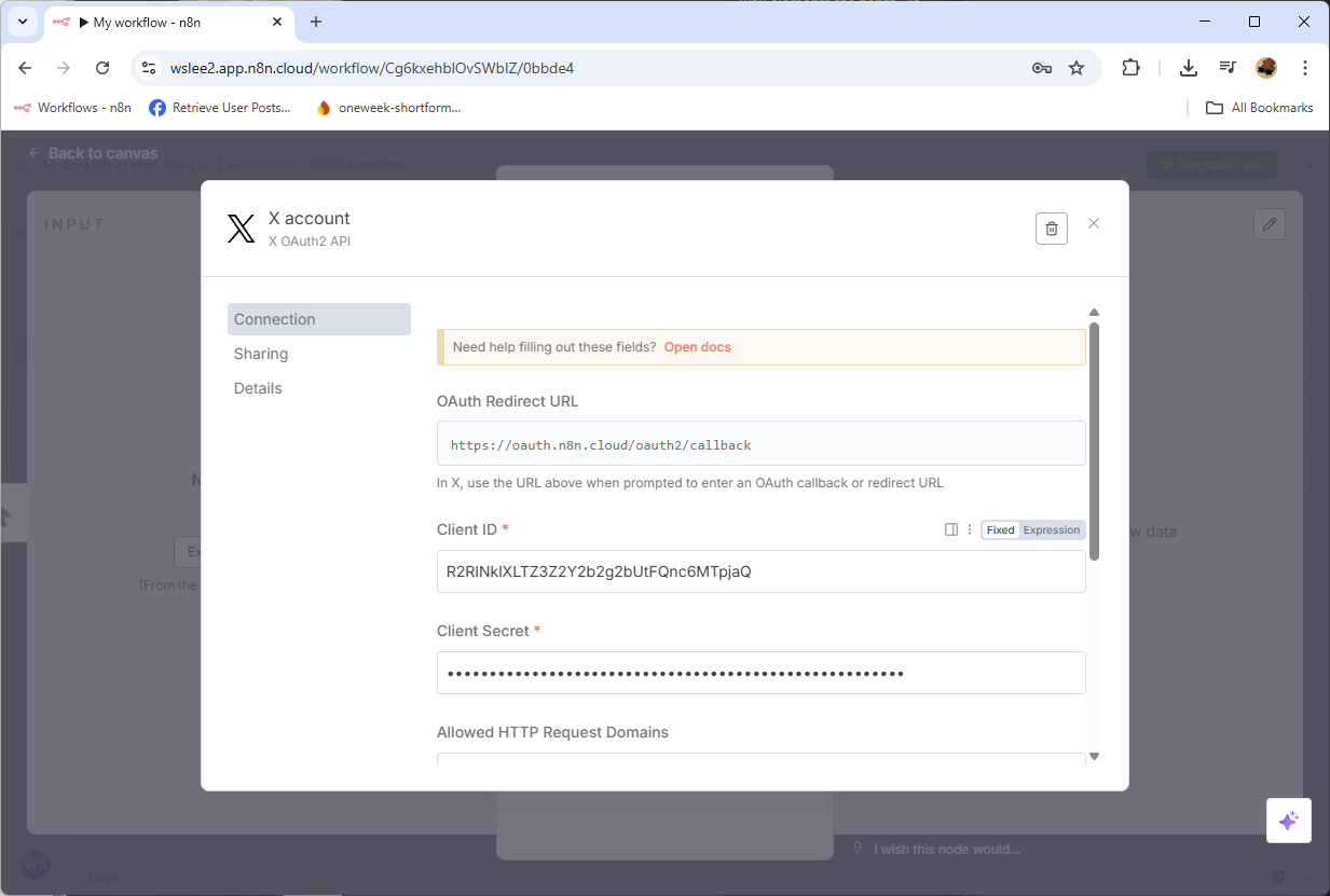 I have my CLIENT ID and CLIENT SECRET ready from X developer portal.